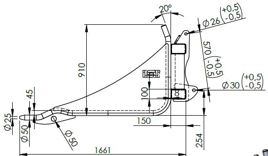Stengrep 2750 mm med Onepipe och Stora BM-fäste. Härdade spetsar i HB500.